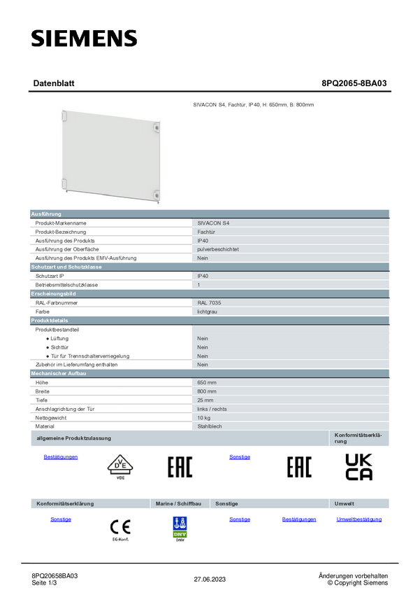 Drzwi półki Siemens 8PQ2065-8BA03 1 szt.