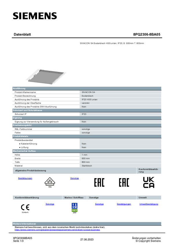 Płytka bazowa Siemens 8PQ2306-8BA05 1 szt.