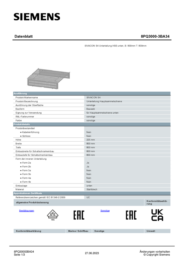 8PQ30003BA34 Pooddział Siemens 8PQ3000-3BA34 1 szt.