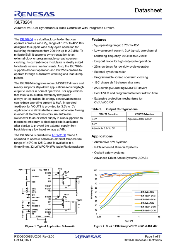 ISL78264 Automotive Dual Synchronous Buck Controller with Integrated Drivers