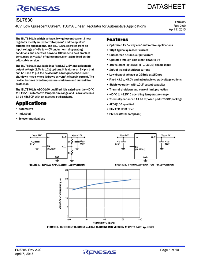 ISL78301FVEAZ-T, ISL78301FVEAZ-T7A, ISL78301FVEBZ, ISL78301FVEBZ-T, ISL78301FVEBZ-T7A, ISL78301FVECZ, ISL78301FVECZ-T, ISL78301FVECZ-T7A, ISL78301