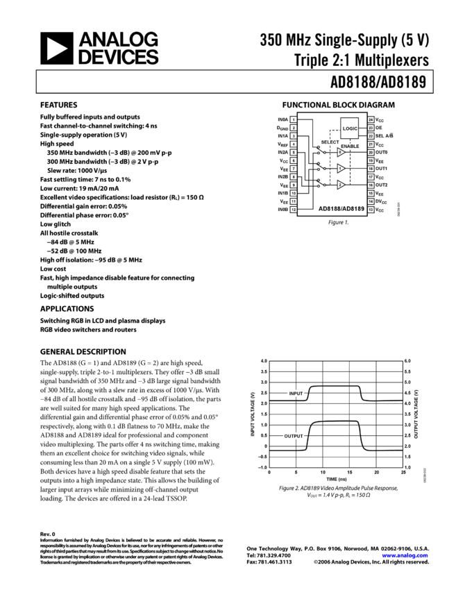 AD8189: 350 MHz Single-Supply (5 V) Triple 2:1 Multiplexer