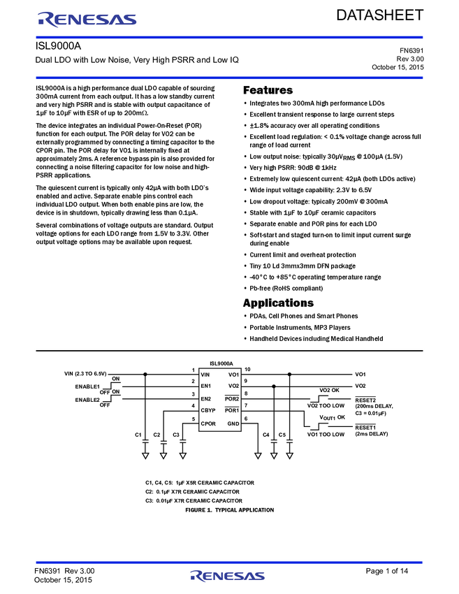 ISL9000AIRBBZ Dual LDO with Low Noise, Very High PSRR, and Low IQ