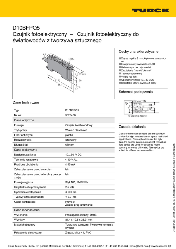 Turck 3073406 D10BFPQ5 Czujnik światłowodowy 1 szt. (D x S x W) 84.4 x 10.5 x 35.9 mm