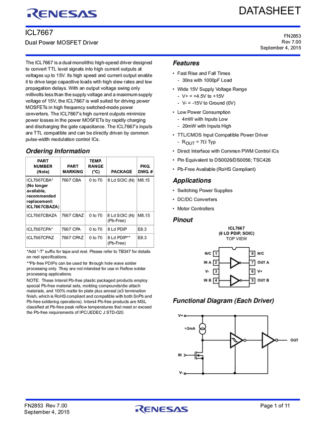 ICL7667CBAZA-T, ICL7667CPA, ICL7667CPAZ, ICL7667