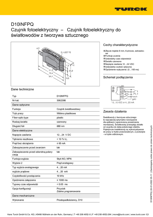 3062386 Turck 3062386 D10INFPQ Czujnik światłowodowy 1 szt. (D x S x W) 84.4 x 10.5...