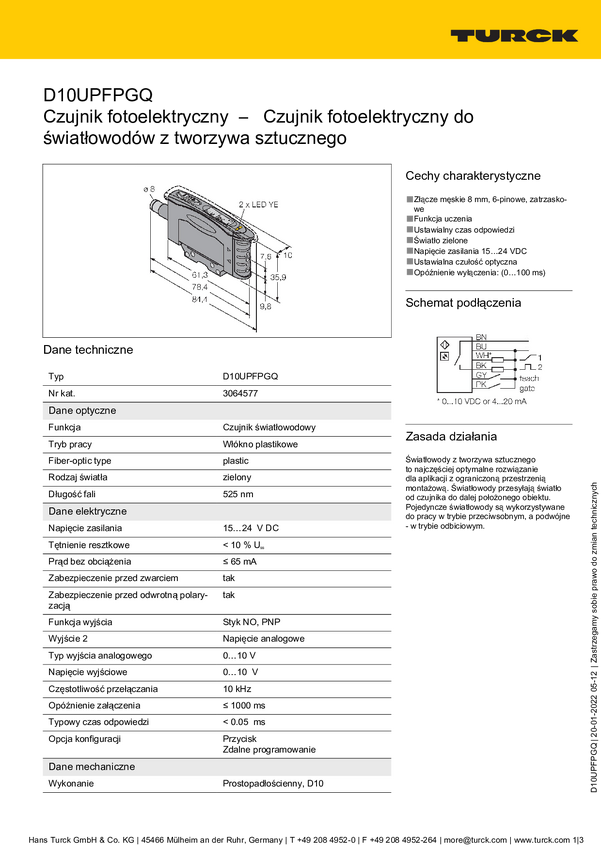 3064577 Turck 3064577 D10UPFPGQ Czujnik światłowodowy 1 szt. (D x S x W) 84.4 x 10....
