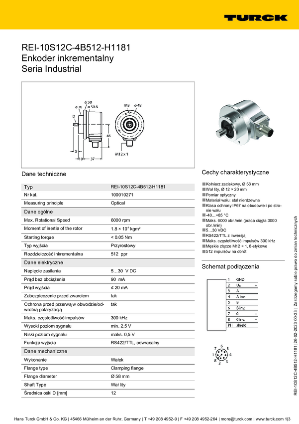 100010271 Enkoder obrotowy inkrementalny Turck 100010271 Optyczny