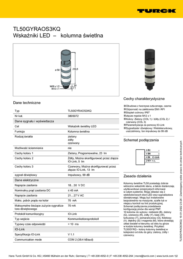 3805072 Sygnalizator łączony Turck TL50GYRAOS3KQ