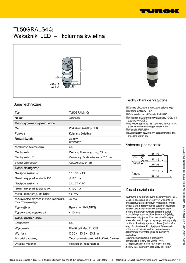 3085510 Sygnalizator łączony Turck TL50GRALS4Q