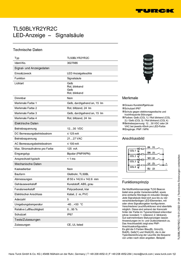 3027985 Kolumna sygnalizacyjna Turck TL50BLYR2YR2C 3027985 1 szt.