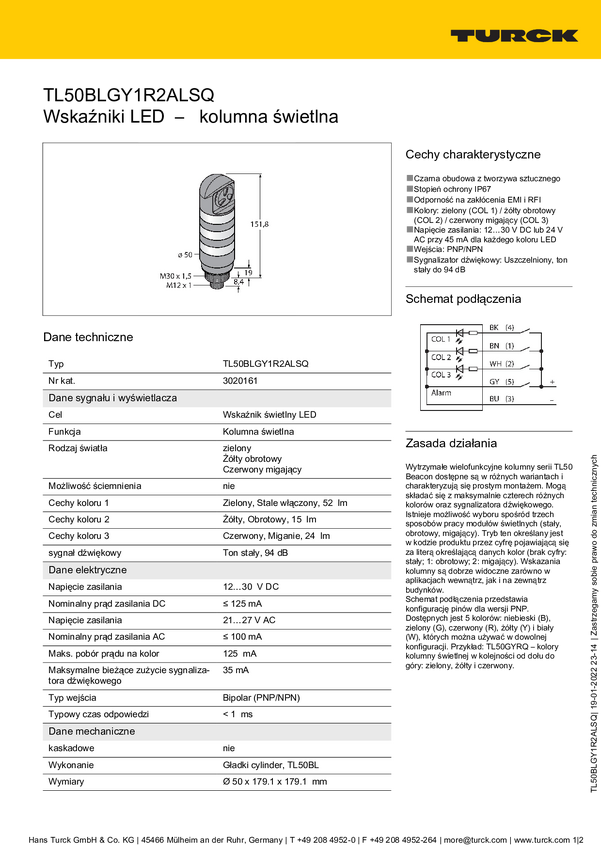 3020161 Sygnalizator łączony Turck TL50BLGY1R2ALSQ