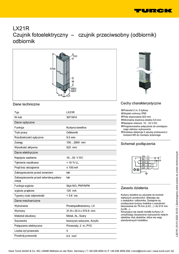 3071814 Turck Bezzwrotny czujnik fotoelektryczny LX21R Wysokość ochronna 523 mm