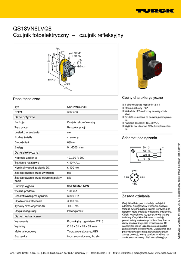 3066453 Fotokomórka odbiciowa Turck QS18VN6LVQ8 3066453 1 szt.