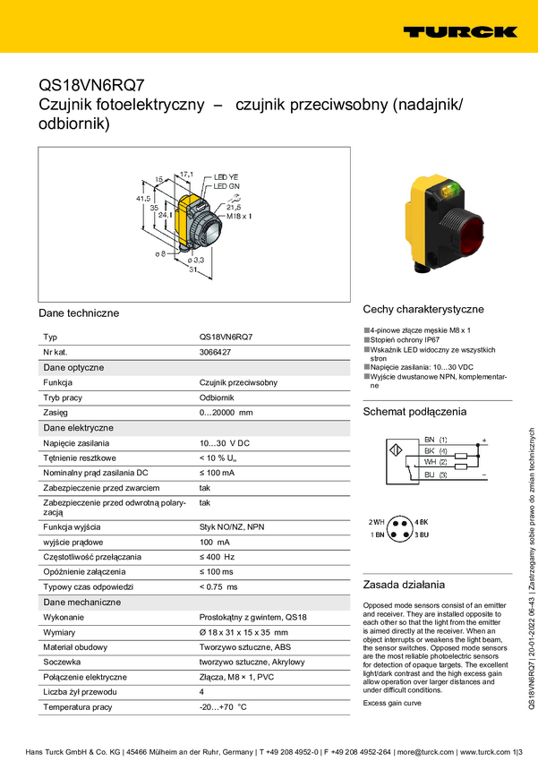 3066427 Bezzwrotny czujnik fotoelektryczny Turck QS18VN6RQ7 3066427 1 szt.