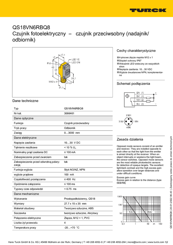 3066461 Bezzwrotny czujnik fotoelektryczny Turck QS18VN6RBQ8 3066461 1 szt.