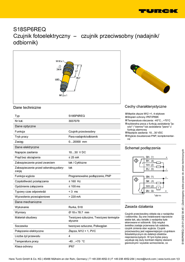 3037079 Bezzwrotny czujnik fotoelektryczny Turck S18SP6REQ 3037079 1 szt.