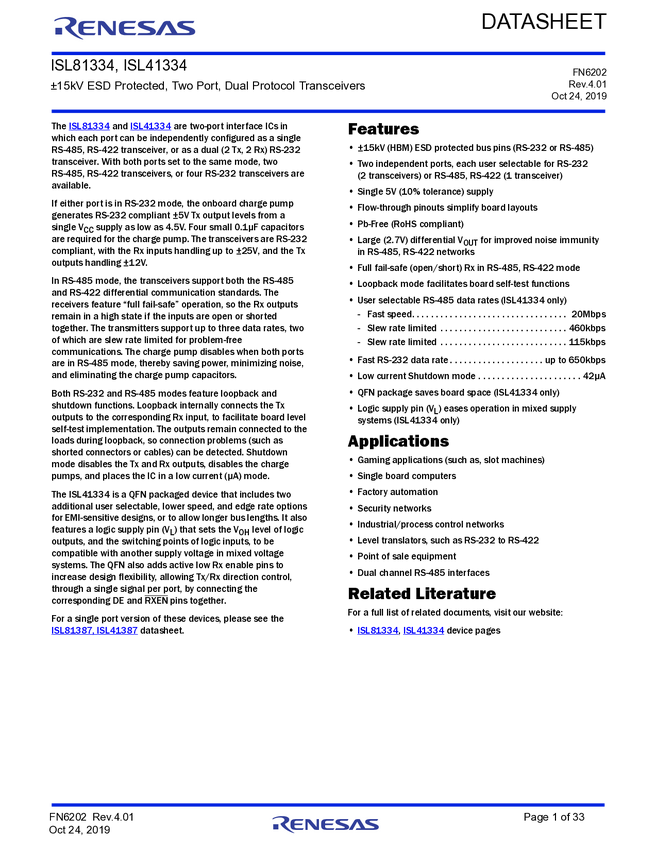 ISL81334IAZ-T, ISL81334IBZ, ISL81334IBZ-T, ISL81334