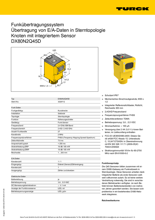 3026112 Czujnik dyfuzyjny Turck DX80N2Q45D 3026112 1 szt.