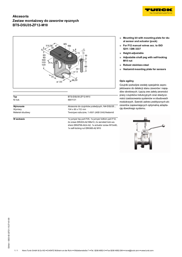 Turck 6901131 Zestaw montażowy BTS-DSU35-ZF12-M10 1 szt.