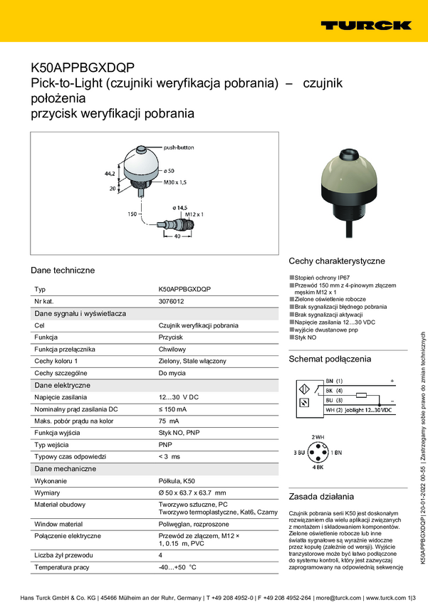 3076012 Czujnik umiejscowienia Turck K50APPBGXDQP 3076012 1 szt.