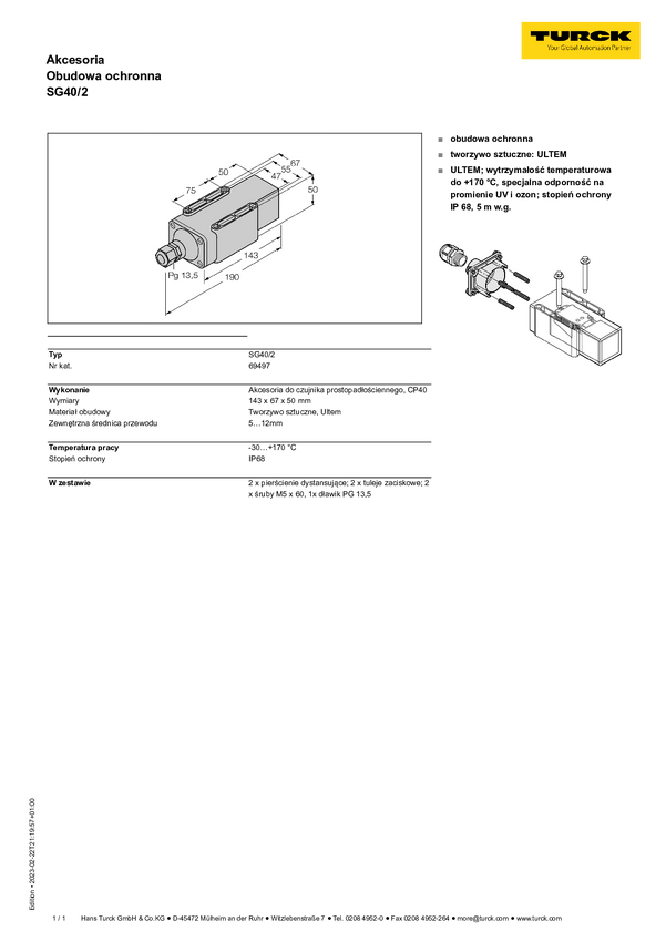 69497 Turck 69497 Obudowa ochronna SG40/2 1 szt.