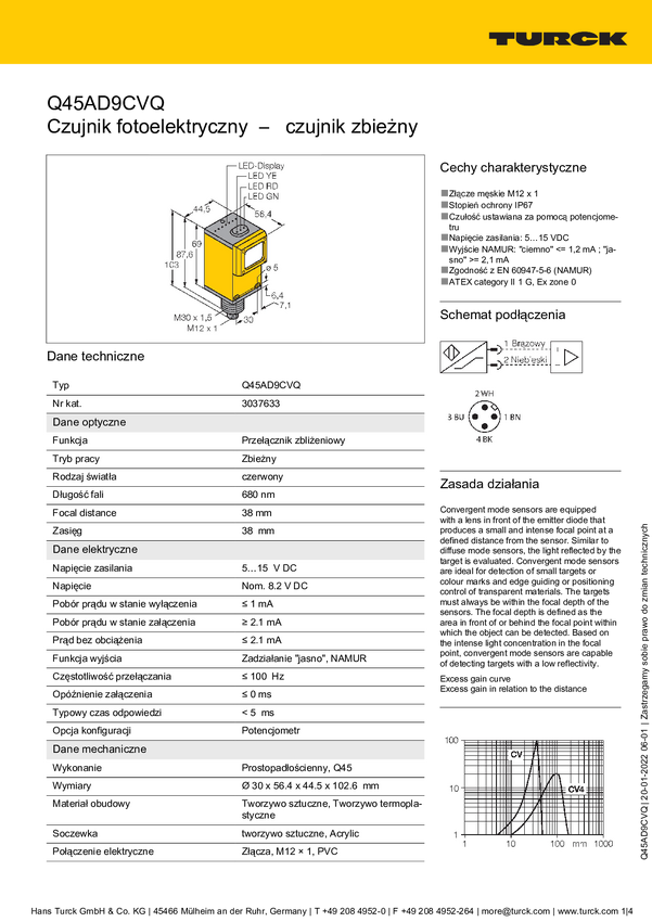 3037633 Czujnik światła Turck Q45AD9CVQ 3037633 1 szt.