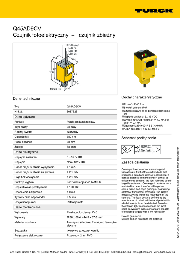 3037623 Czujnik światła Turck Q45AD9CV 3037623 1 szt.