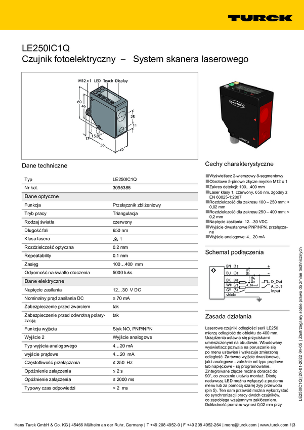 Turck Czujnik odległości PNP, NPN LE250IC1Q