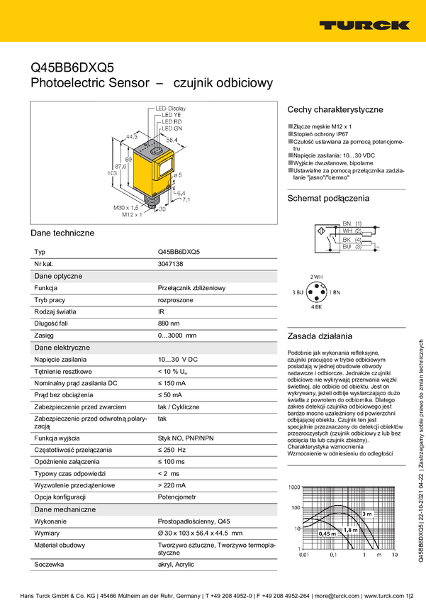 3047138 Czujnik dyfuzyjny Turck Q45BB6DXQ5 3047138 1 szt.