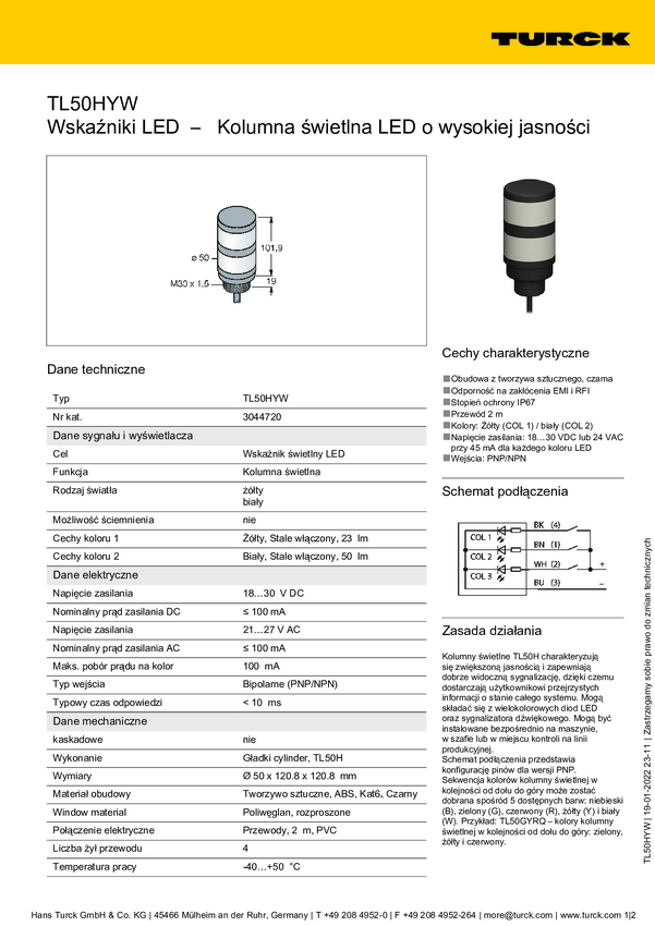 3044720 Kolumna sygnalizacyjna Turck TL50HYW 3044720 1 szt.