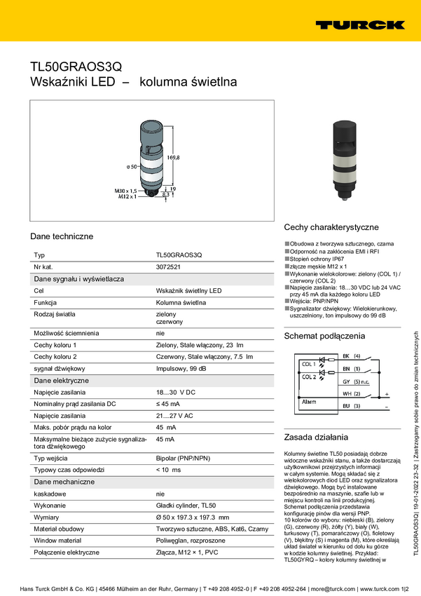 3072521 Sygnalizator łączony Turck TL50GRAOS3Q