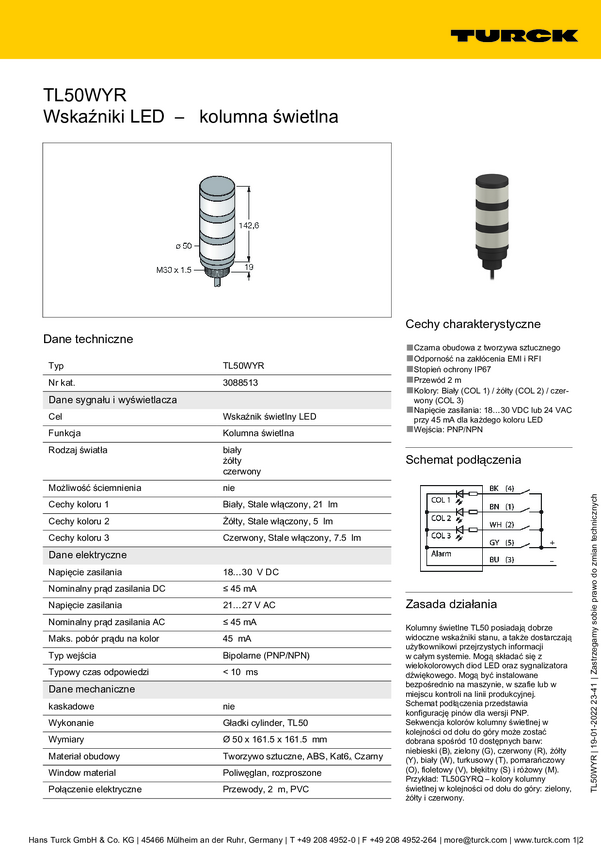 3088513 Kolumna sygnalizacyjna Turck TL50WYR 3088513 1 szt.