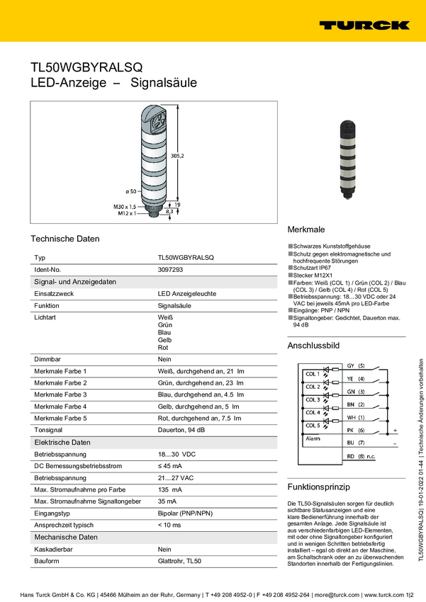 3097293 Sygnalizator łączony Turck TL50WGBYRALSQ