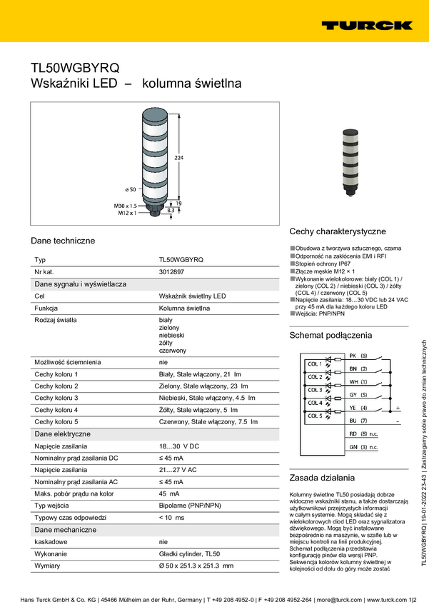 3012897 Kolumna sygnalizacyjna Turck TL50WGBYRQ 3012897 1 szt.