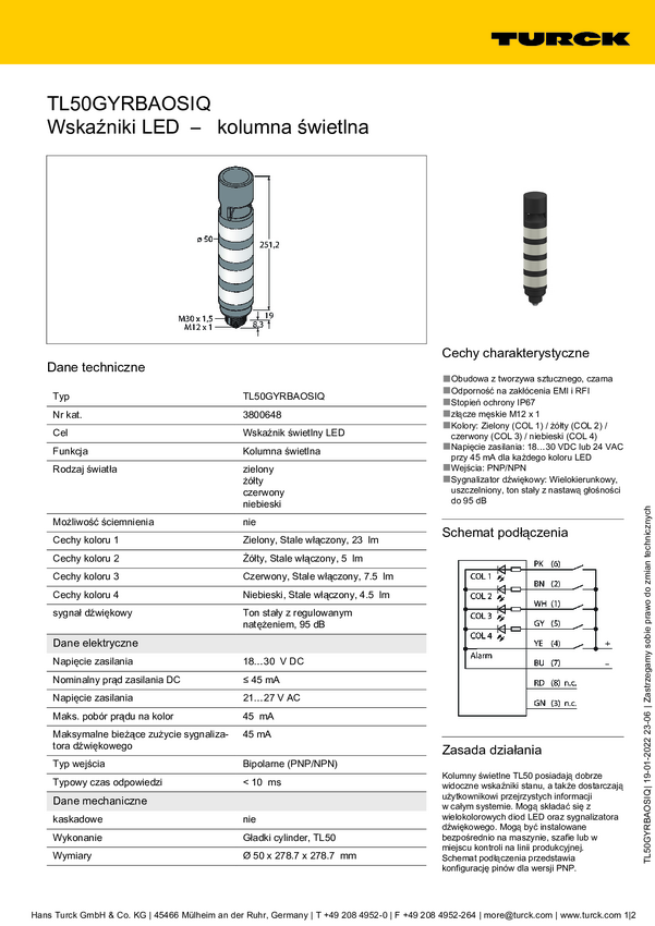 3800648 Sygnalizator łączony Turck TL50GYRBAOSIQ