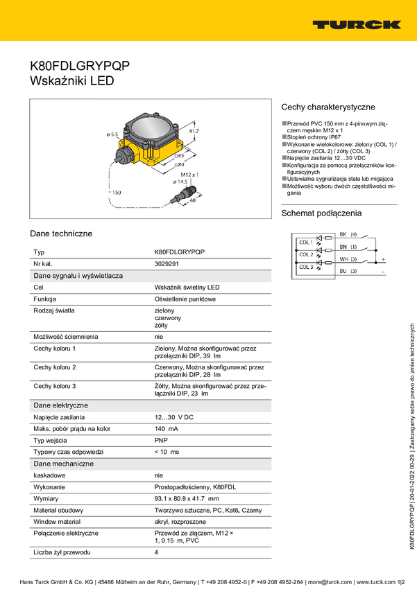 3029291 Lampa migająca Turck K80FDLGRYPQP światło ciągłe