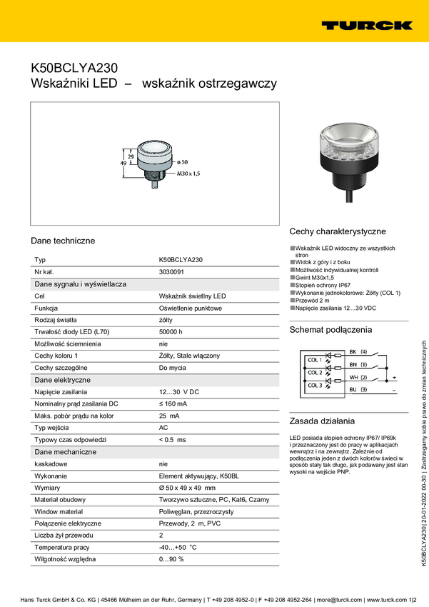 Lampa okrągła Turck K50BCLYA230 światło ciągłe