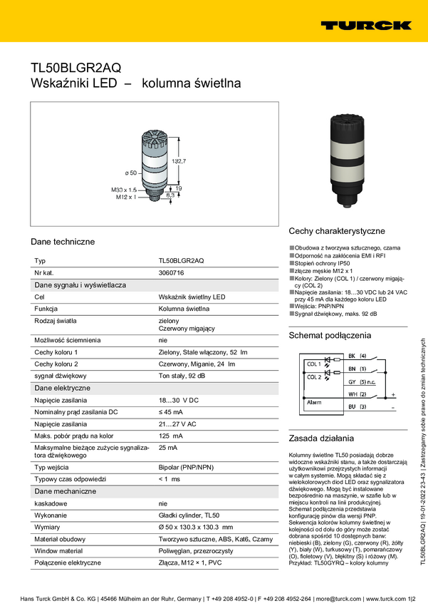 3060716 Sygnalizator łączony Turck TL50BLGR2AQ