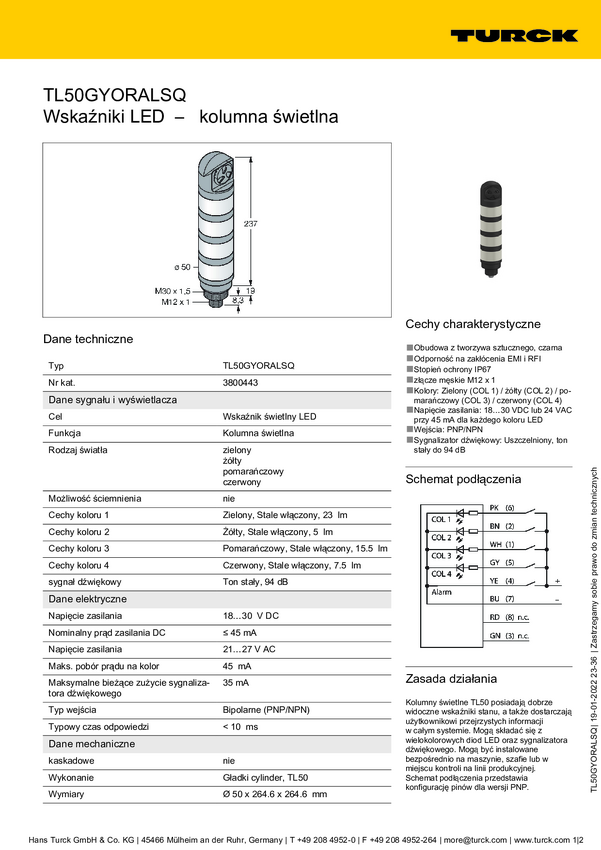 3800443 Sygnalizator łączony Turck TL50GYORALSQ