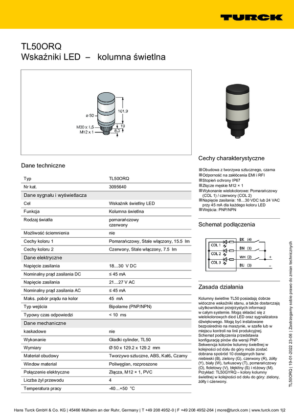 3095640 Kolumna sygnalizacyjna Turck TL50ORQ 3095640 1 szt.