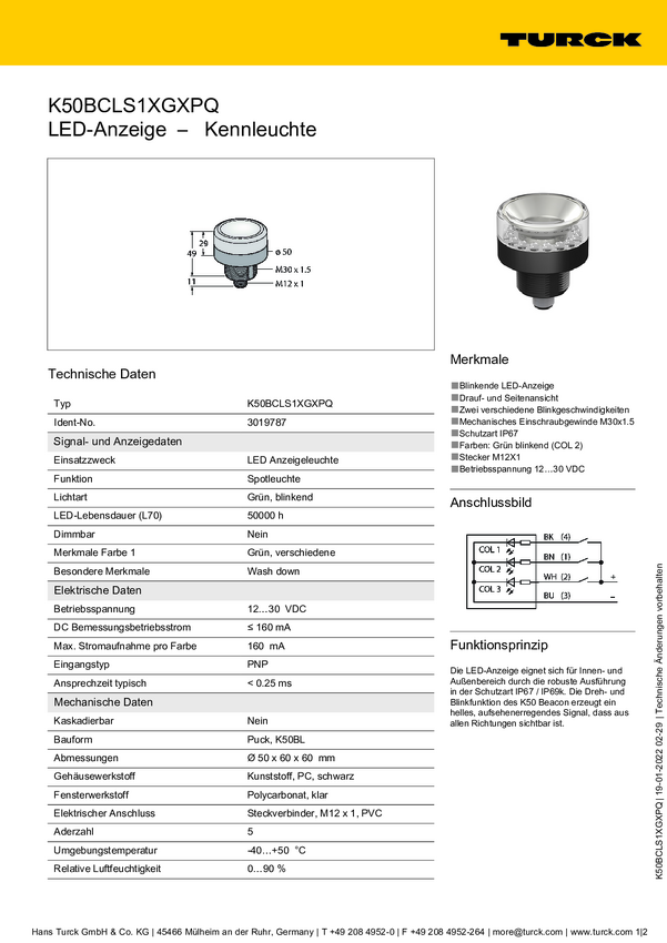 3019787 Lampa migająca Turck K50BCLS1XGXPQ światło migające