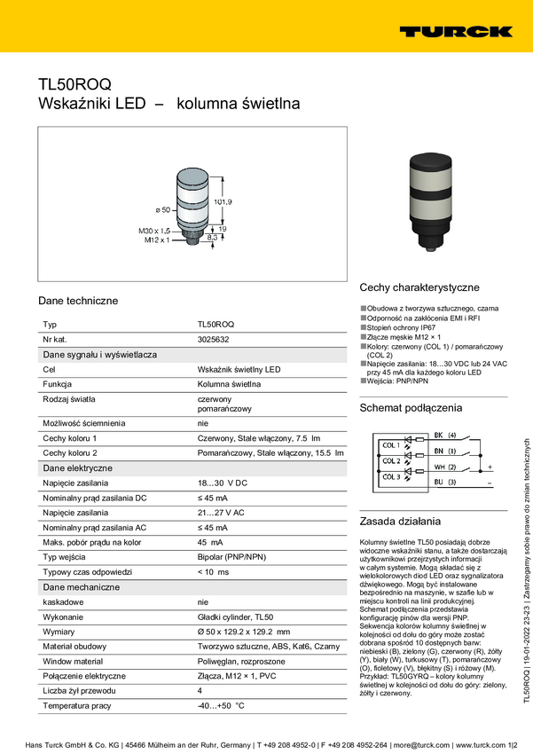 3025632 Kolumna sygnalizacyjna Turck TL50ROQ 3025632 1 szt.