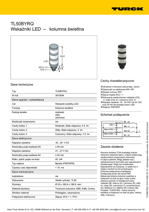 3010594 Kolumna sygnalizacyjna Turck TL50BYRQ 3010594 1 szt.