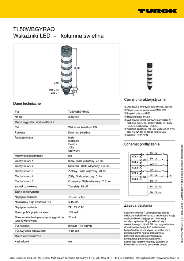 3092248 Kolumna sygnalizacyjna Turck TL50WBGYRAQ 3092248 1 szt.