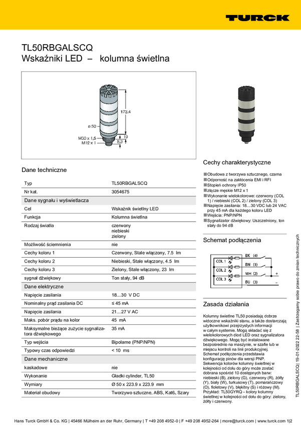 3054675 Sygnalizator łączony Turck TL50RBGALSCQ