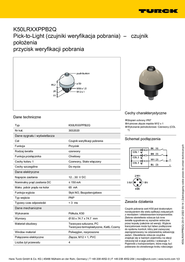 3032020 Element oświetleniowy ciągły Turck K50LRXXPPB2Q czerwony