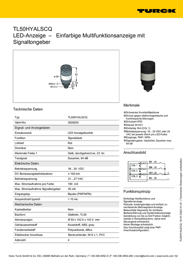 3028203 Sygnalizator łączony Turck TL50HYALSCQ
