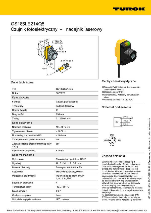 3075972 Opto-czujnik Turck QS186LE214Q5 3075972 1 szt.