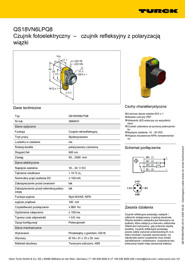 3066451 Fotokomórka odbiciowa Turck QS18VN6LPQ8 3066451 1 szt.